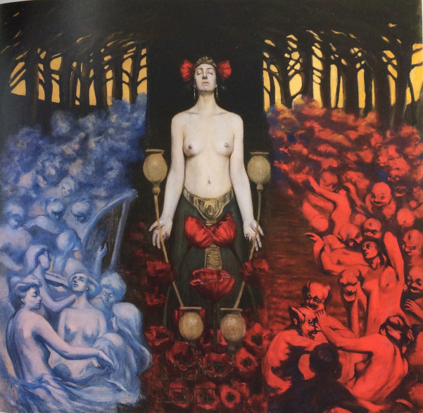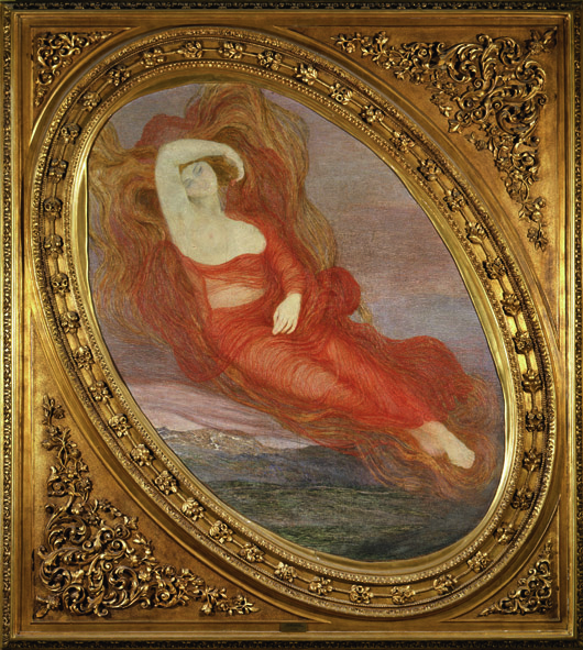 Non appena entrati, ci si immerge nel mondo onirico: lo sguardo viene immediatamente catturato da “Il sonno, i sogni” di Attilio Mussino. Una donna è immersa in uno stato di incoscienza, che potrebbe anche essere stato causato dai “fiori del male”, i papaveri rossi da oppio, e si trova in una radura, a metà tra spiriti maligni e spiriti angelici. Accanto, dai colori meno intensi, ma altrettanto misterioso vi è “Il sogno” di Joan Brull. Famosissimo e molto amato dal pubblico per il suo tono romantico, ci mostra una fanciulla intenta a guardare un gruppo di ragazze in lontananza mentre danzano, sfuocate come sfuocato è ciò che resta al mattino dopo del nostro sogno.