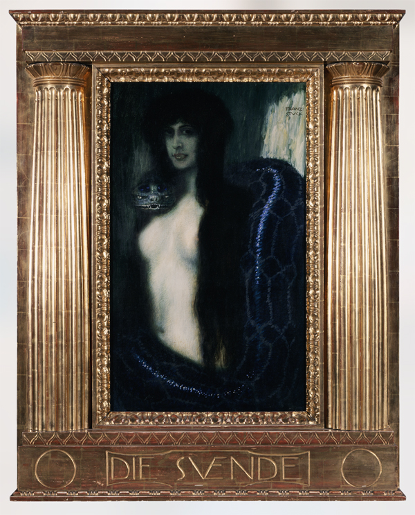 Non sono molte, però, le donne angelicate. Il Simbolismo, infatti, è la corrente che consacra la femme fatale, qui alla mostra declinata nelle sue mille sfaccettature. La ritroviamo come Eva, simbolo de “Il peccato” nell’opera manifesto di Franz von Stuck, come ghepardo in agguato, come ci mostra la locandina “Carezze (L’Arte)” di Fernand Khnopff. Nella mitologia è un’affascinante sirena che ammalia i marinai e li trascina in fondo al mare, come vediamo ne “La sirena” di Sartorio o in “Tritone e Nereide” di Max Klinger. Secondo Félicien Rops è la Fortuna guidata dalla lussuria, mentre Giovanni Segantini la rende una dea dai capelli rossi.